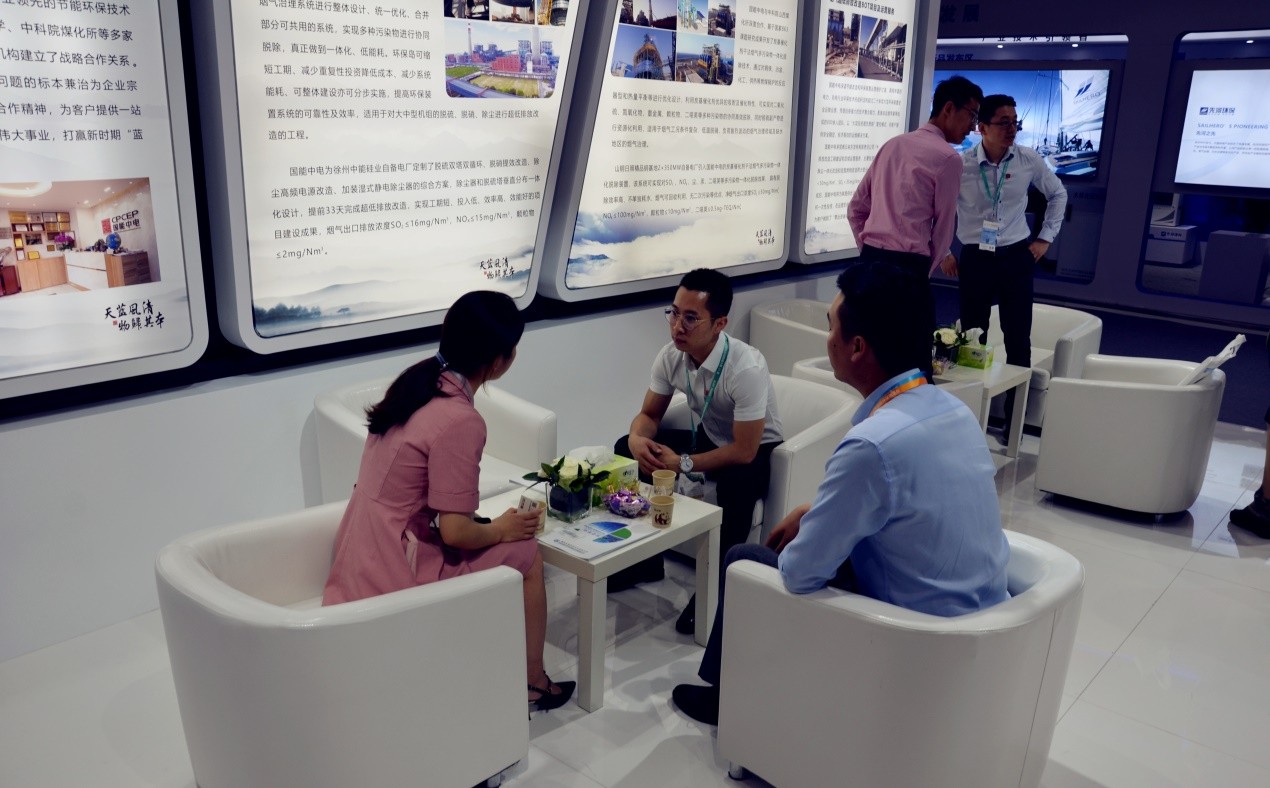 國能中電作為節(jié)能環(huán)保行業(yè)的領(lǐng)軍企業(yè),多年來致力于工業(yè)煙氣治理、超凈火力發(fā)電、生物質(zhì)能源利用、綠色金融服務和環(huán)保新材料研發(fā)等領(lǐng)域。在此次展會中,國能中電集中、全面、生動地展示了公司煙氣污染物協(xié)同脫除系統(tǒng)(SRS)—環(huán)保島、炭基催化劑干法煙氣多污染物一體化脫除技術(shù)、余熱閃蒸自結(jié)晶“3C-MED”脫硫廢水零排放技術(shù)、激光熔覆技術(shù)、環(huán)保浸金劑技術(shù)等多項優(yōu)勢核心技術(shù),以及環(huán)保裝置第三方運維、環(huán)保核心設備生產(chǎn)等專業(yè)服務。