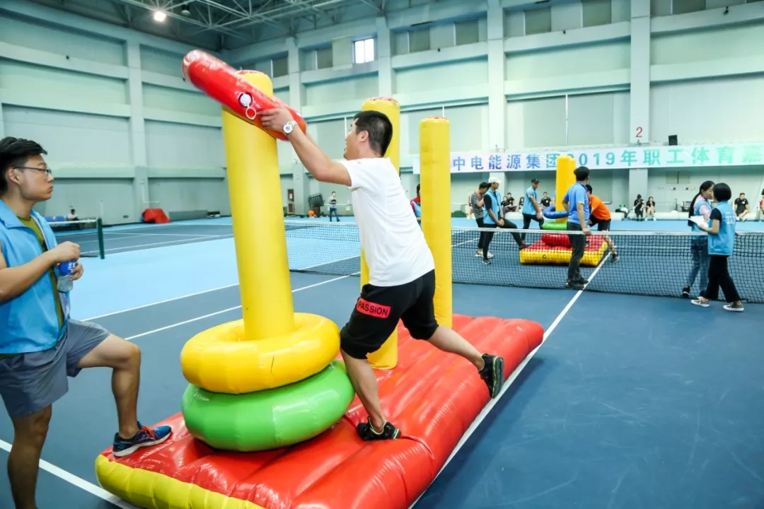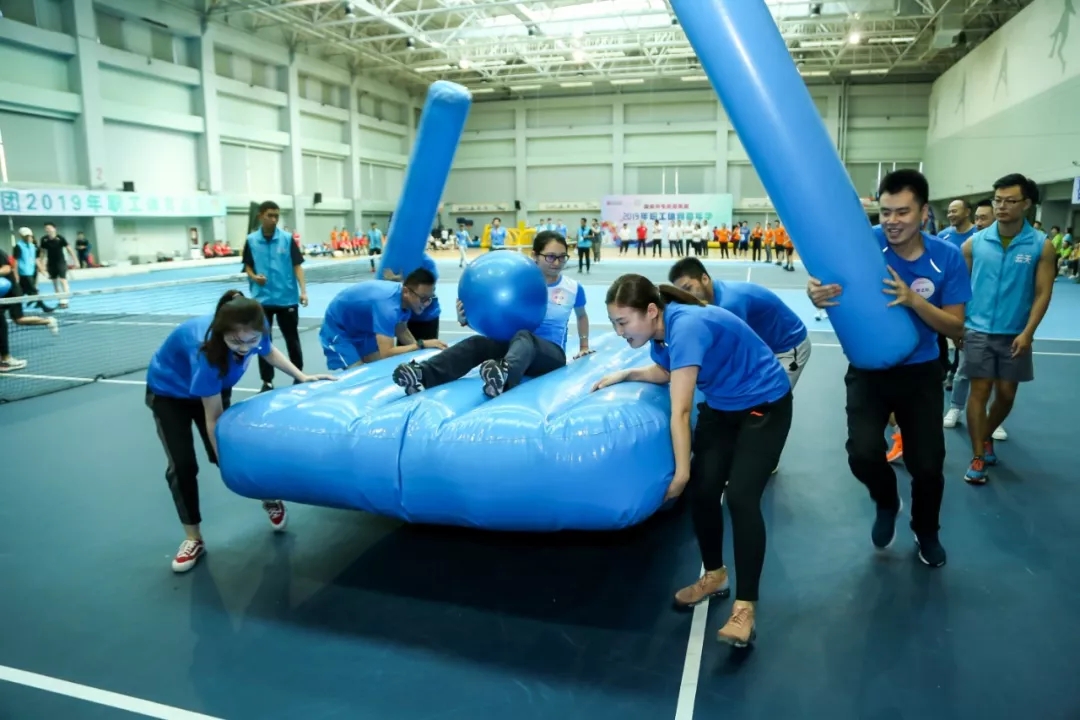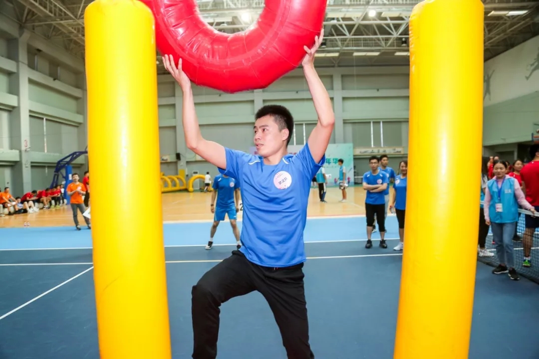 此次活動的項目經過了精心設置,將在職工中普遍開展的羽毛球、籃球項目設置為專業競技項目,此外,綜合考慮職工身體素質差異和群眾參與性,設置了輕量化、趣味性更強的團體競技項目七項:滾滾向前、旋轉飛碟、旱地龍舟、漢諾塔、動感顛球、超級障礙賽、拔河。