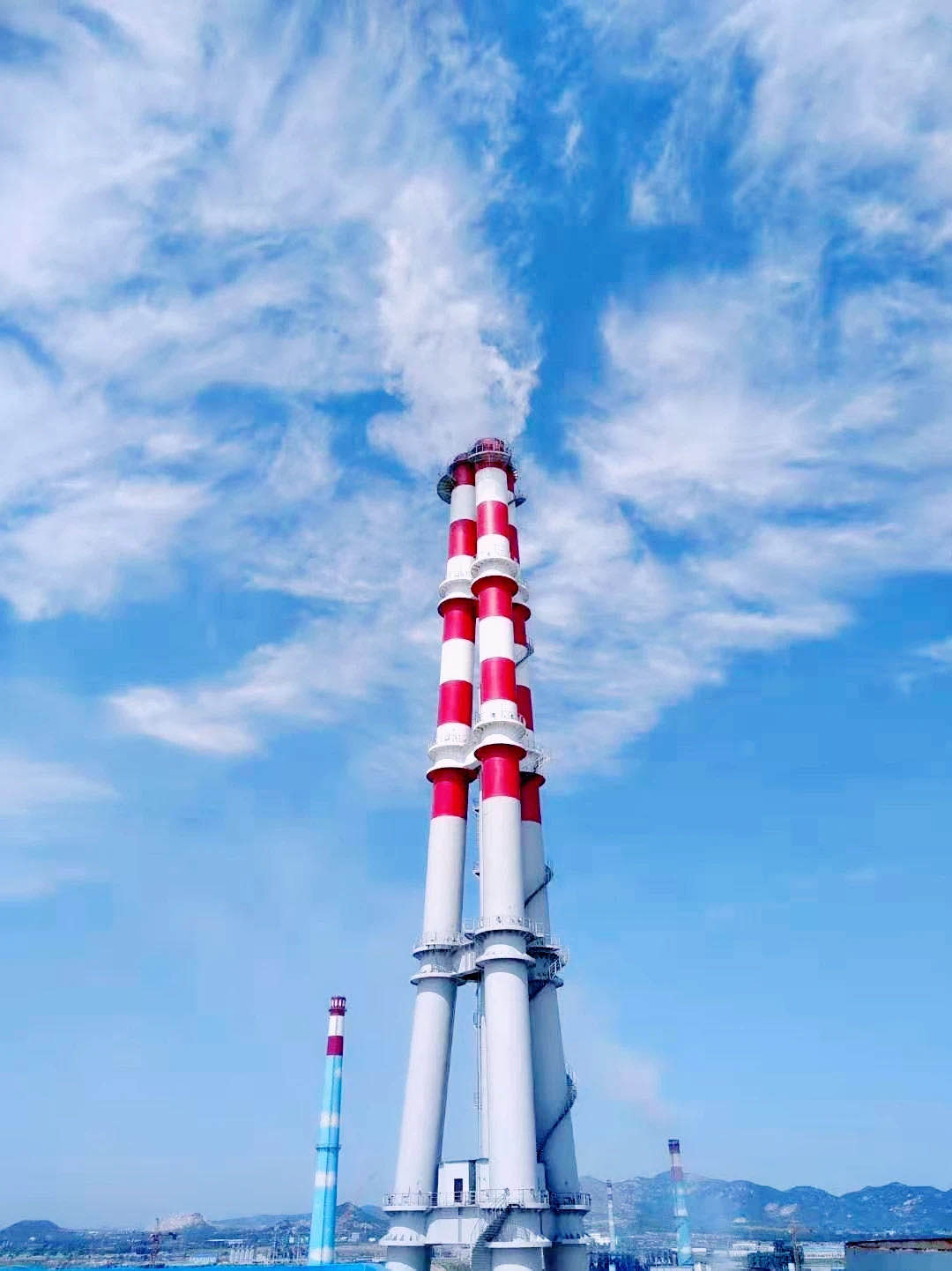 除利用多項國內(nèi)外先進技術(shù)、先進新材料外,電廠設(shè)立的三管自立式鋼煙囪,內(nèi)壁貼襯鈦板,有效降低了造價和電廠煙囪防腐的成本,是世界范圍內(nèi)第一根內(nèi)壁貼襯鈦板的鋼管式煙囪。對今后我國工業(yè)項目區(qū)建設(shè)、降低成本具有驗證性示范意義。