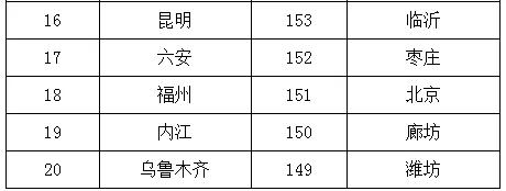 2019年6月,168個(gè)重點(diǎn)城市中唐山、邢臺(tái)、石家莊市等20個(gè)城市空氣質(zhì)量相對(duì)較差(從第168名到第149名);海口、珠海、中山市等20個(gè)城市空氣質(zhì)量相對(duì)較好(從第1名到第20名,見附表1)。