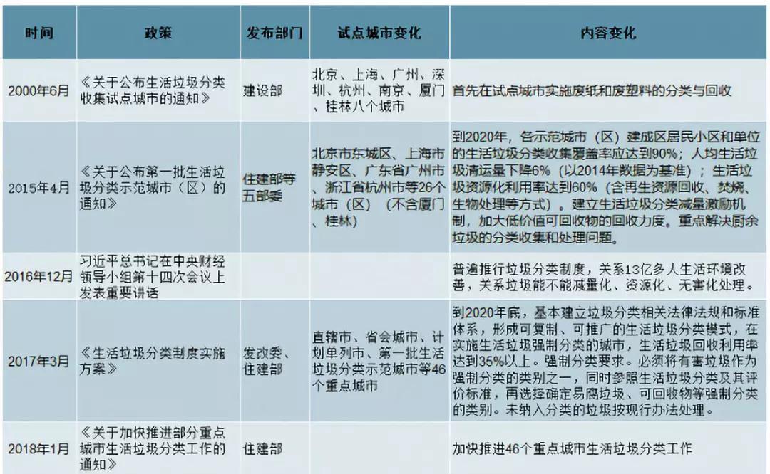 垃圾分類政策開啟廚余垃圾處理市場。2000年,北京、上海等8個城市被列為生活垃圾分類試點城市;2015年,26個城市(區)被列為“全國第一批生活垃圾分類示范城市(區)”;2017年,發改委住建部發布《生活垃圾分類制度實施方案》,要求在全國46個城市先行實施生活垃圾強制分類;2019年,《關于在全國地級及以上城市全面開展生活垃圾分類工作的通知》明確提出“有害垃圾、干垃圾、濕垃圾和可回收物”的生活垃圾4分類法則,并將分類范圍從原先的46個試點城市推廣至293個地級城市。目標明確為,到2025年全國地級及以上城市基本建成生活垃圾分類處理系統。而2017年293個地級及以上城市垃圾清運量為1.76億噸,是之前46個試點城市垃圾清運量的1.85倍。